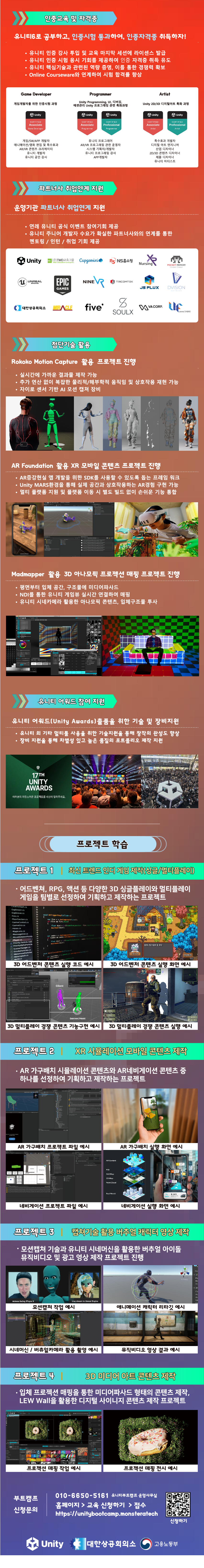 본 과정은 전액 무료 과정으로 고용노동부가 청년 취업희망자를 대상으로 실시하는 실무 프로젝트 중심 K-Digital Training 교육입니다. VR/AR기술기반의 실감형콘텐츠 제작전문과 교육과 실무제작 기술을 함양하고 산업현장에서 바로 적용할 수 있는 능력을 갖출 수 있도록 지원하고 있습니다. ICT 기업 참여 실무 프로젝트를 통해 비전공자라도 IT전문가로 취업할 수 있으니 지금 바로 지원해보세요